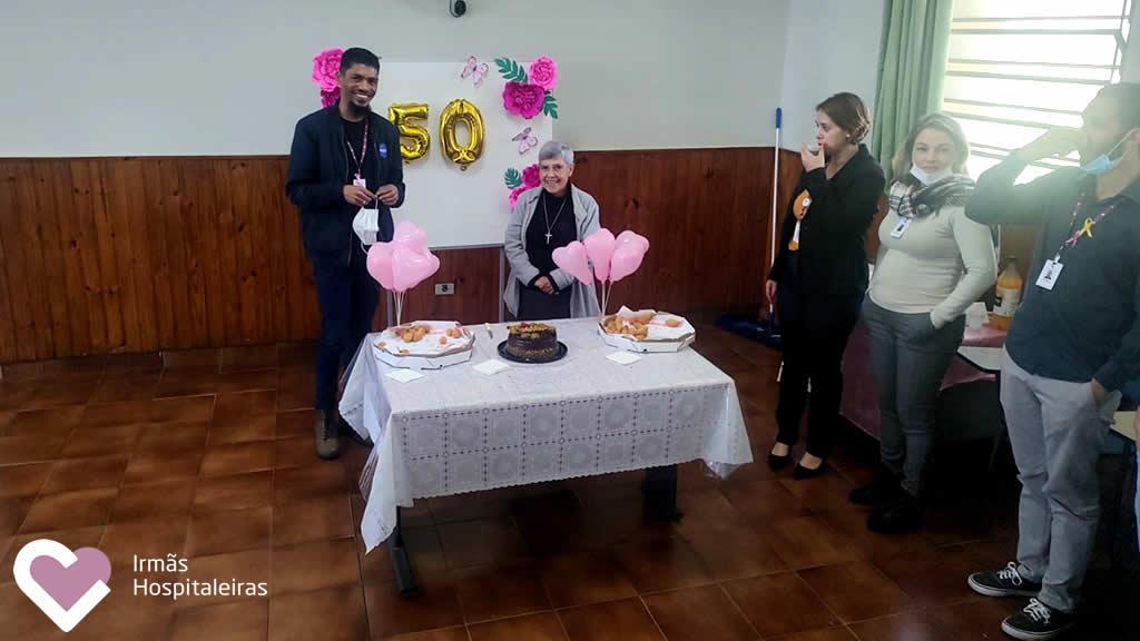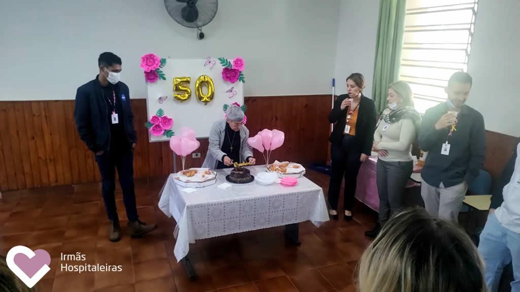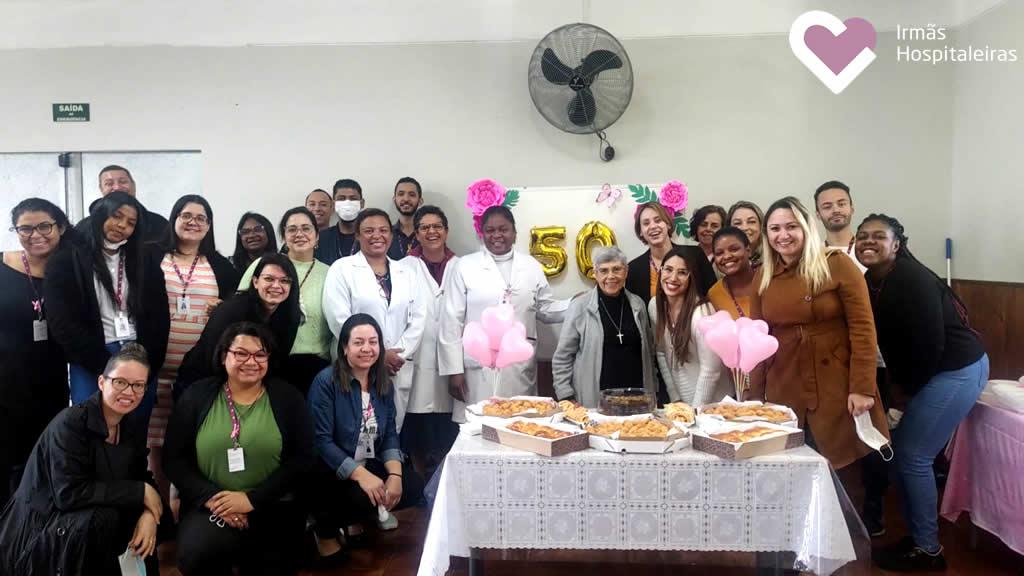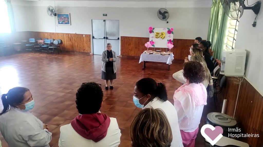 Agradecemos por todas as conquistas que alcançamos juntos, por toda sua dedicação a missão Hospitaleira. É um prazer trabalhar ao seu lado, e ouvir histórias de como as Irmãs Hospitaleiras iniciaram a missão no Brasil.
