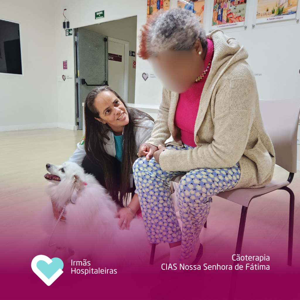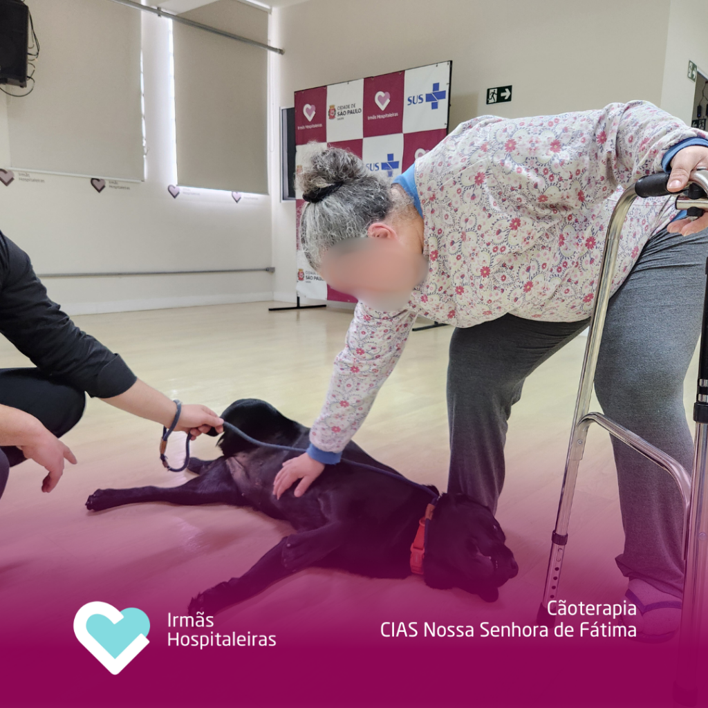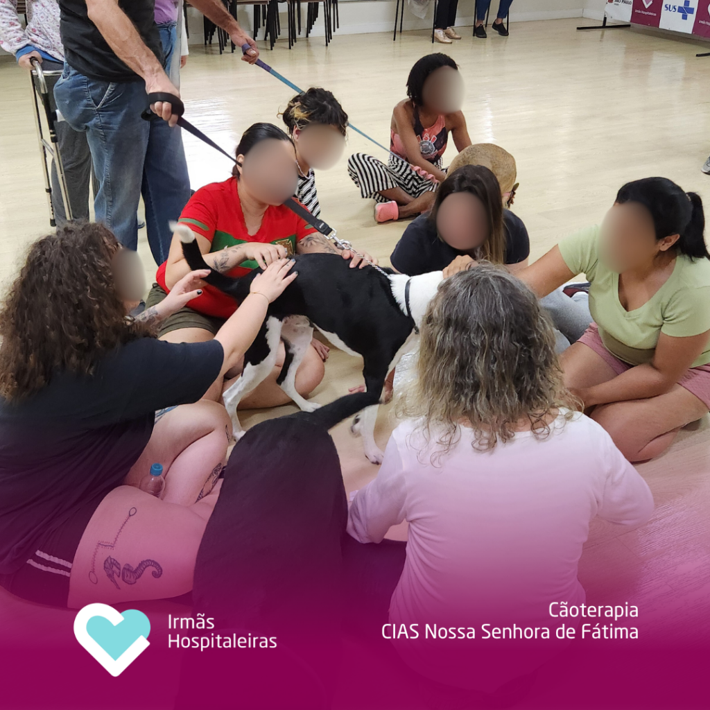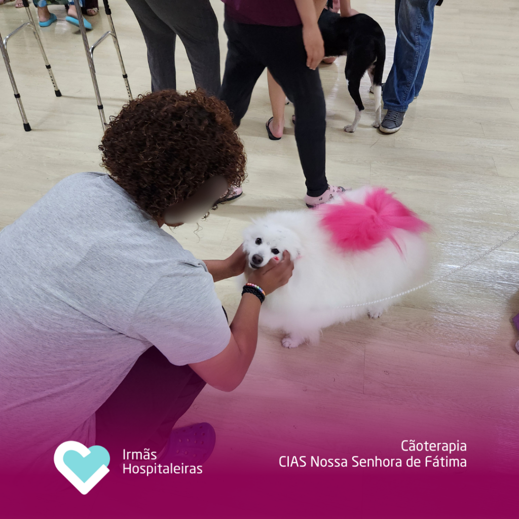 A cãoterapia trouxe alegria e muitos sorrisos para nossos pacientes e colaboradores. A Pérola, uma das nossas fiéis companheiras, também fez questão de demonstrar seu carinho com um presente especial para a Irmã Cecília.