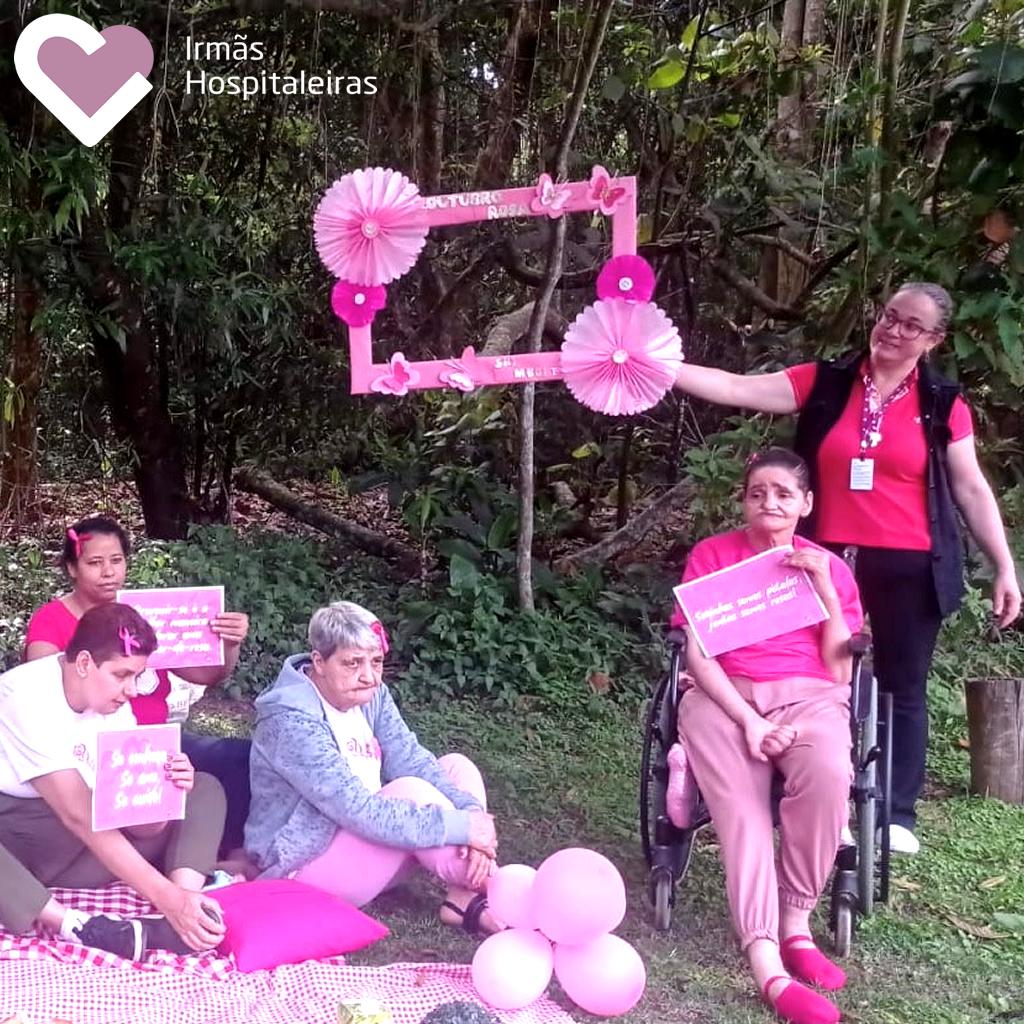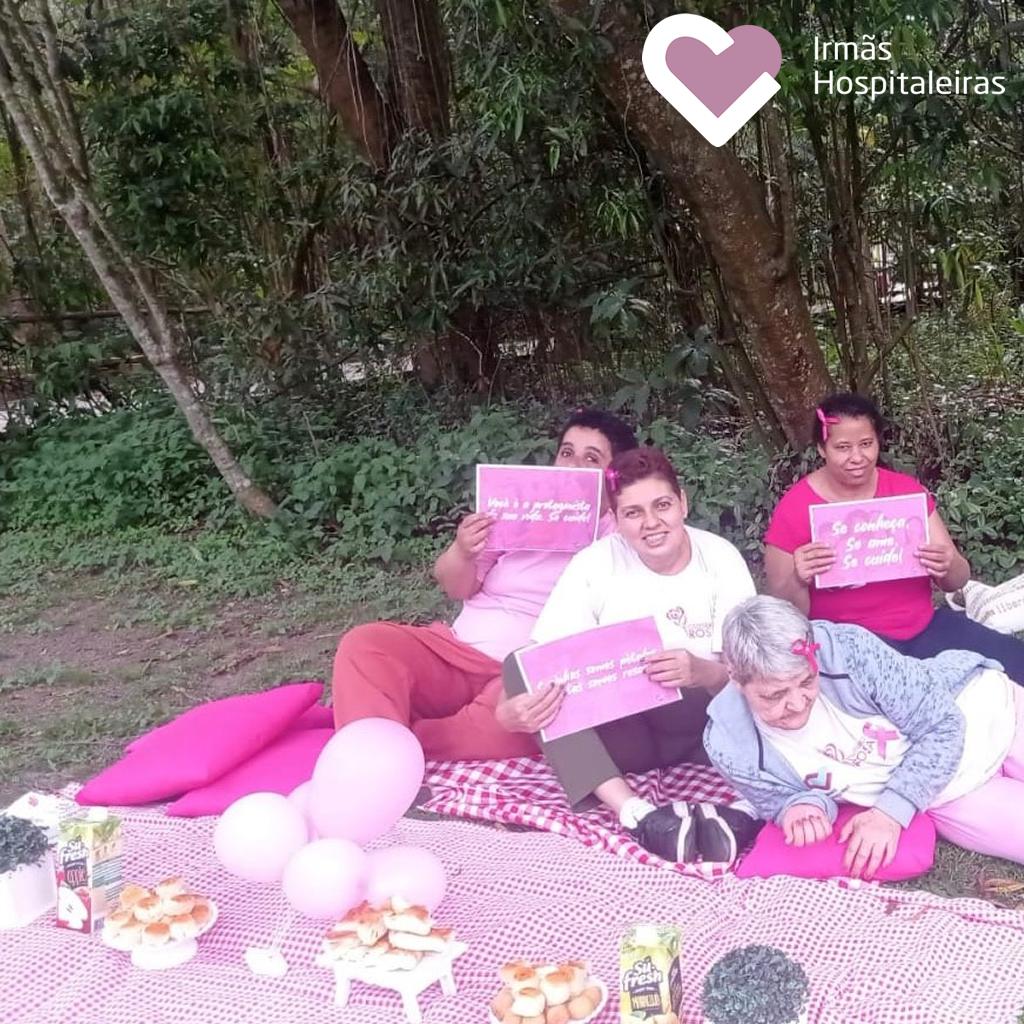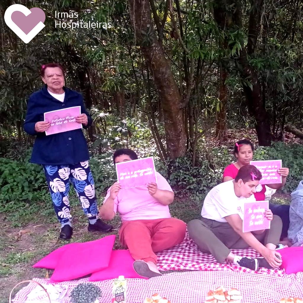 A equipe e moradoras da SRT M’Boi Mirim I, realizou uma ação no Parque Ecológico do Guarapiranga, com a entrega de panfletos informativos e brindes, chamando a atenção para a importância do câncer de mama.