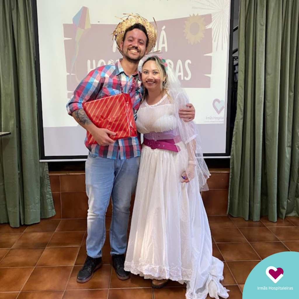 Tivemos casamento caipira, com os noivos trajados a caráter, além de muita comida típica e arrasta pé!